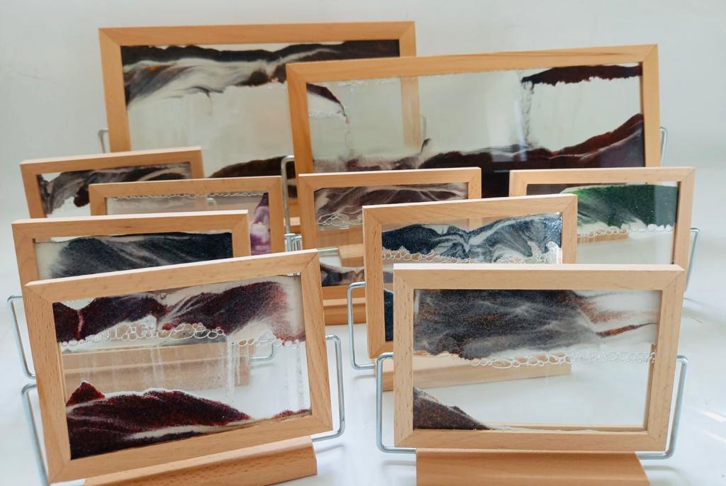 Handmade Glass Sand Pictures. We offer the largest selection of sand patterns on the market, in a whole range of colours, also coloured sand in wooden, aluminium and plastic frames.
