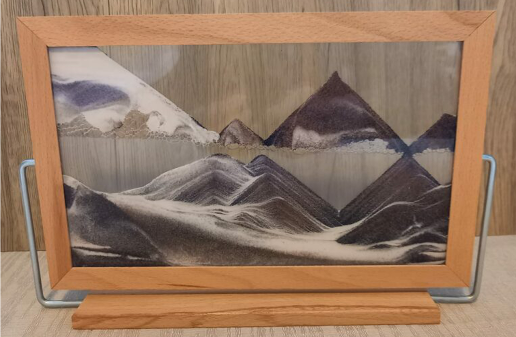 The soft movement of sand grains falling in water combined with carefully chosen water colours introduce the beholder into a blissful state of relaxation, relief and tranquillity and have a great impact on their nervous system and consequently on their whole body. It is well known that carefully chosen sets of colours not only compliment interiors but, more importantly, have therapeutic effects. This method, known throughout the world a Chromotherapy is commonly used in many health and beauty treatment centres, fitness clubs and alternative medicine parlours. This version is recommended to every shop that offers articles related to complementary medicine.