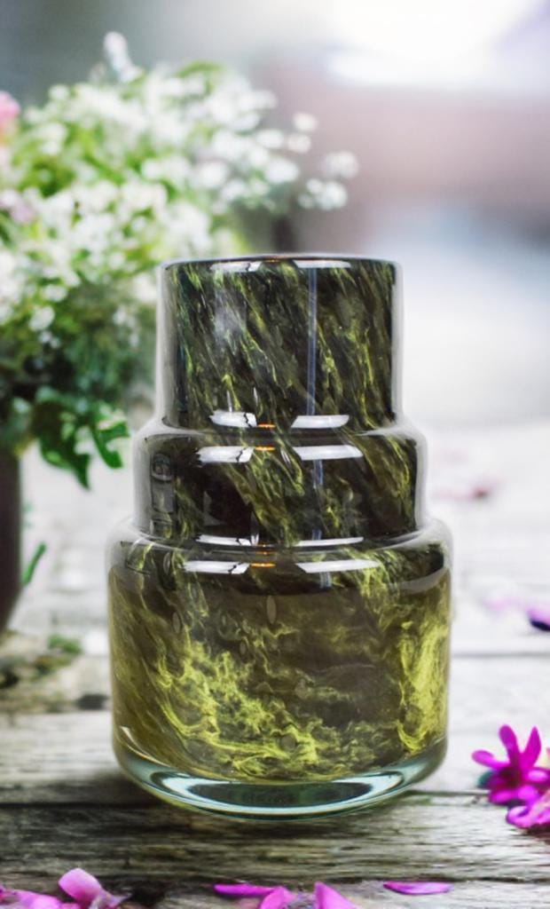 19cm Mouth Blown Green Glass Vase Torch Home Decor,