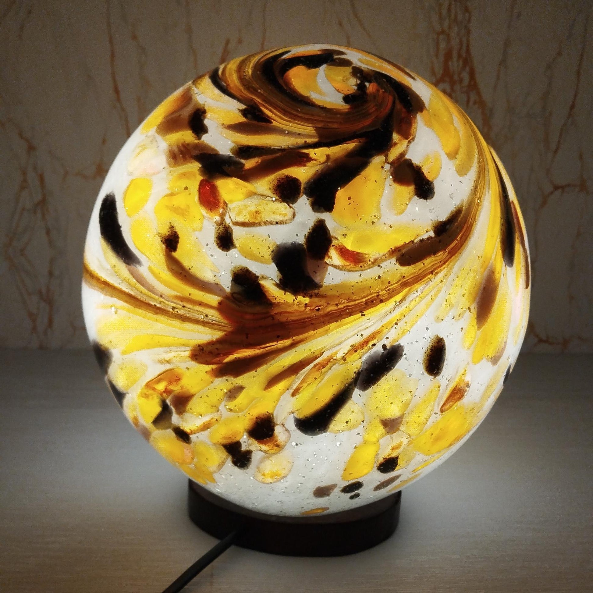 Golden Swirl Glass Sphere Lamp - Unique Handcrafted Ambient Light, Cosy Decor Accent, Artisan Warm Glow Lamp, Christmas Gift Idea Brighten your space with the enchanting Golden Swirl Glass Sphere Lamp.