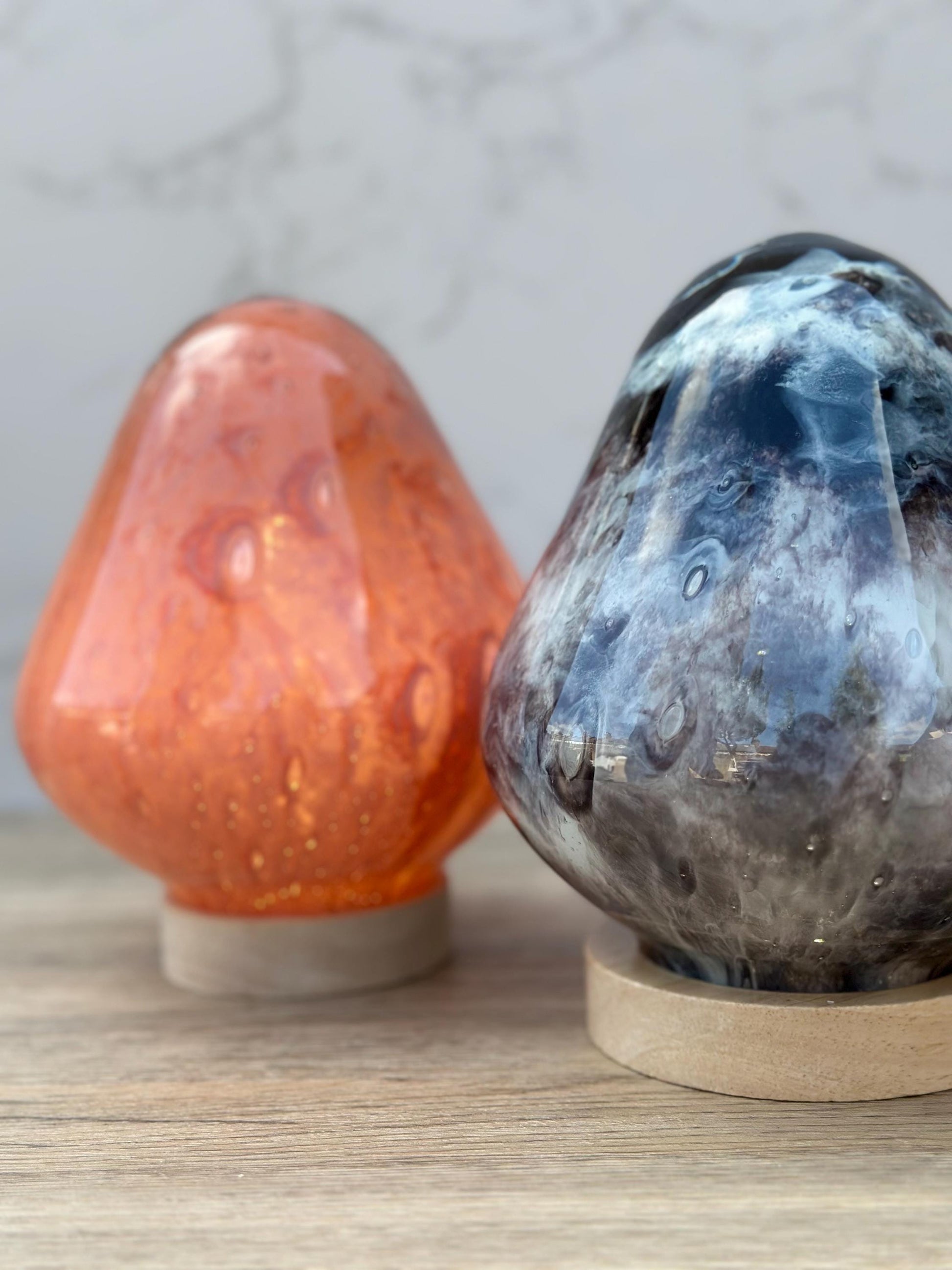 Designed by Joseph, a skilled glass artisan with over 20 years of experience, this unique LED night light brings a touch of whimsy and nature into your home. Its vibrant colours and organic shape make it an ideal addition to any bedroom, nursery, or cosy corner, creating a serene atmosphere that soothes and inspires.