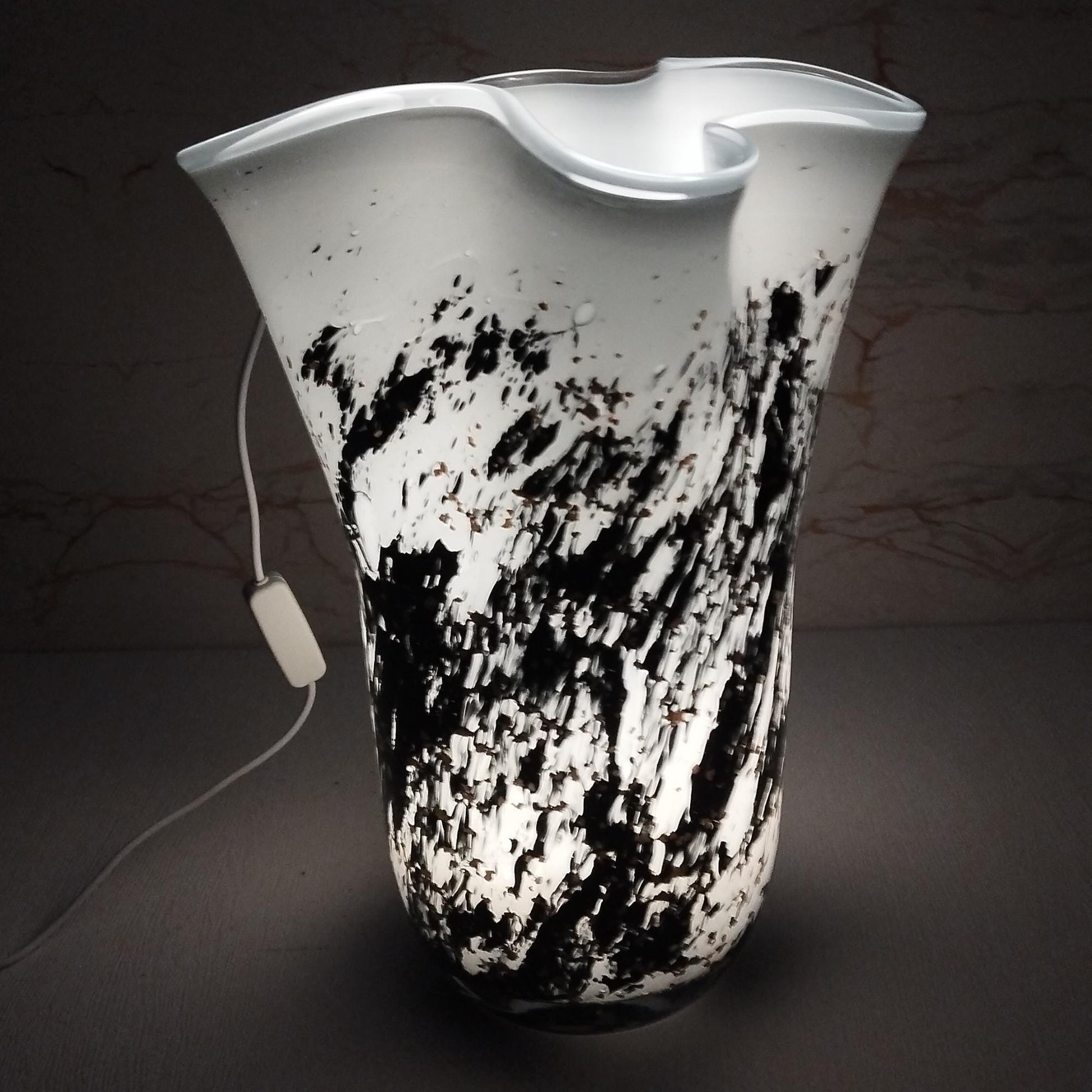 Handcrafted Black & White Glass Vase Lamp: Ambient Home Decor