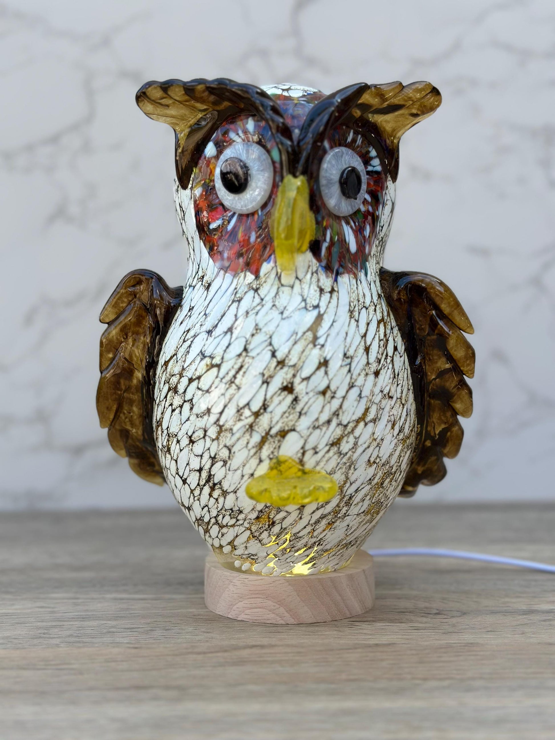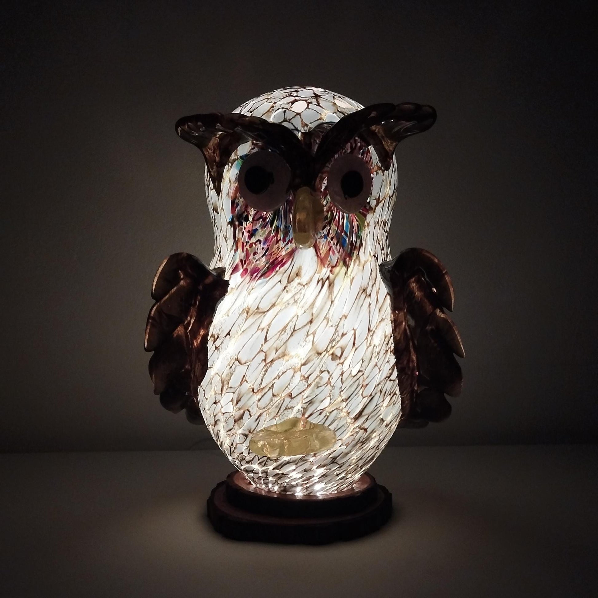 Handcrafted Handmade Sculpture Owl Glass Lamp: LED Night Light