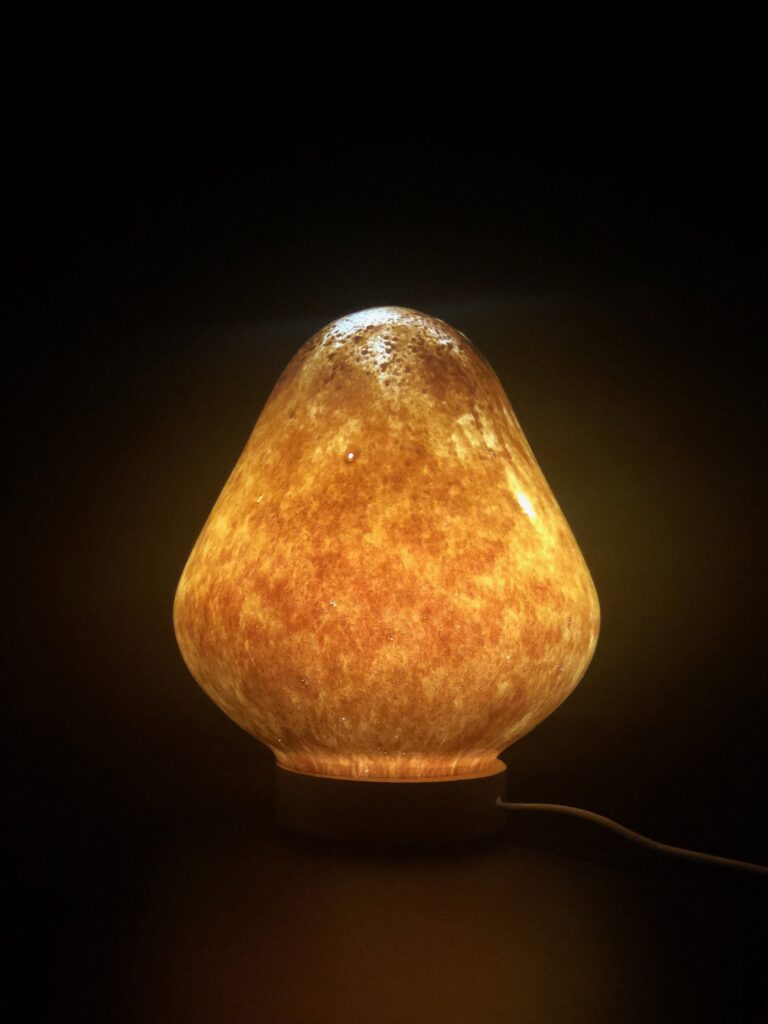 Artistic Design: Handcrafted from high-quality iridescent glass with a stylish wooden base.